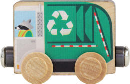 Integral parts of every community, sanitation trucks keep our streets clean. The NameTrains Recycling Truck is crafted from local sustainably harvested native maple hardwood and is compatible with our and other wooden railway systems. Measures approximately 2.4" long by 1.75" high.