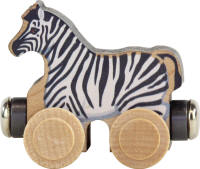 Where will you find this animal car next...zoo, safari or circus? Zoe Zebra is crafted from local sustainably harvested native maple hardwood and is compatible with our and other wooden railway systems. Measures approximately 2.4" by 2" high.
